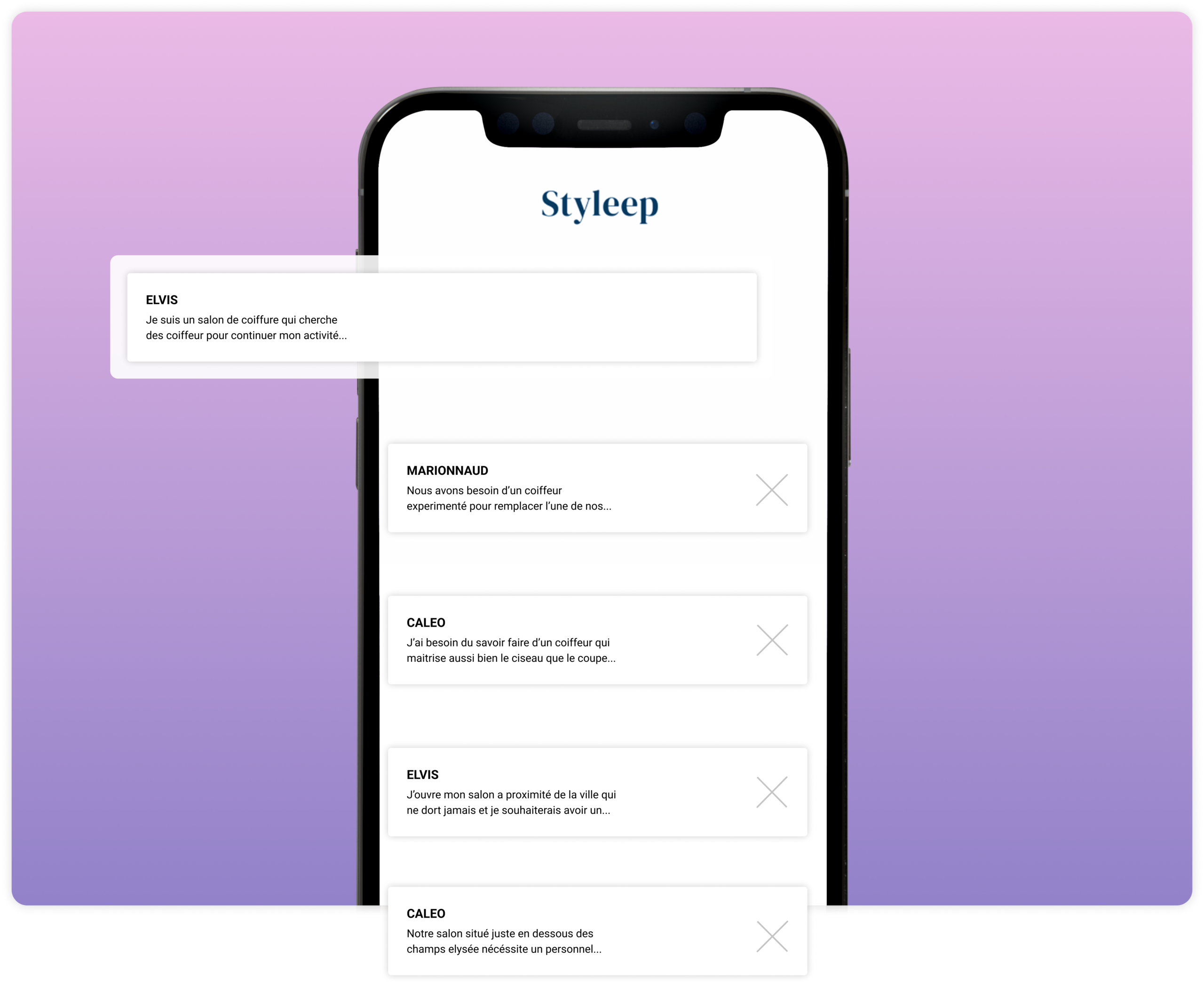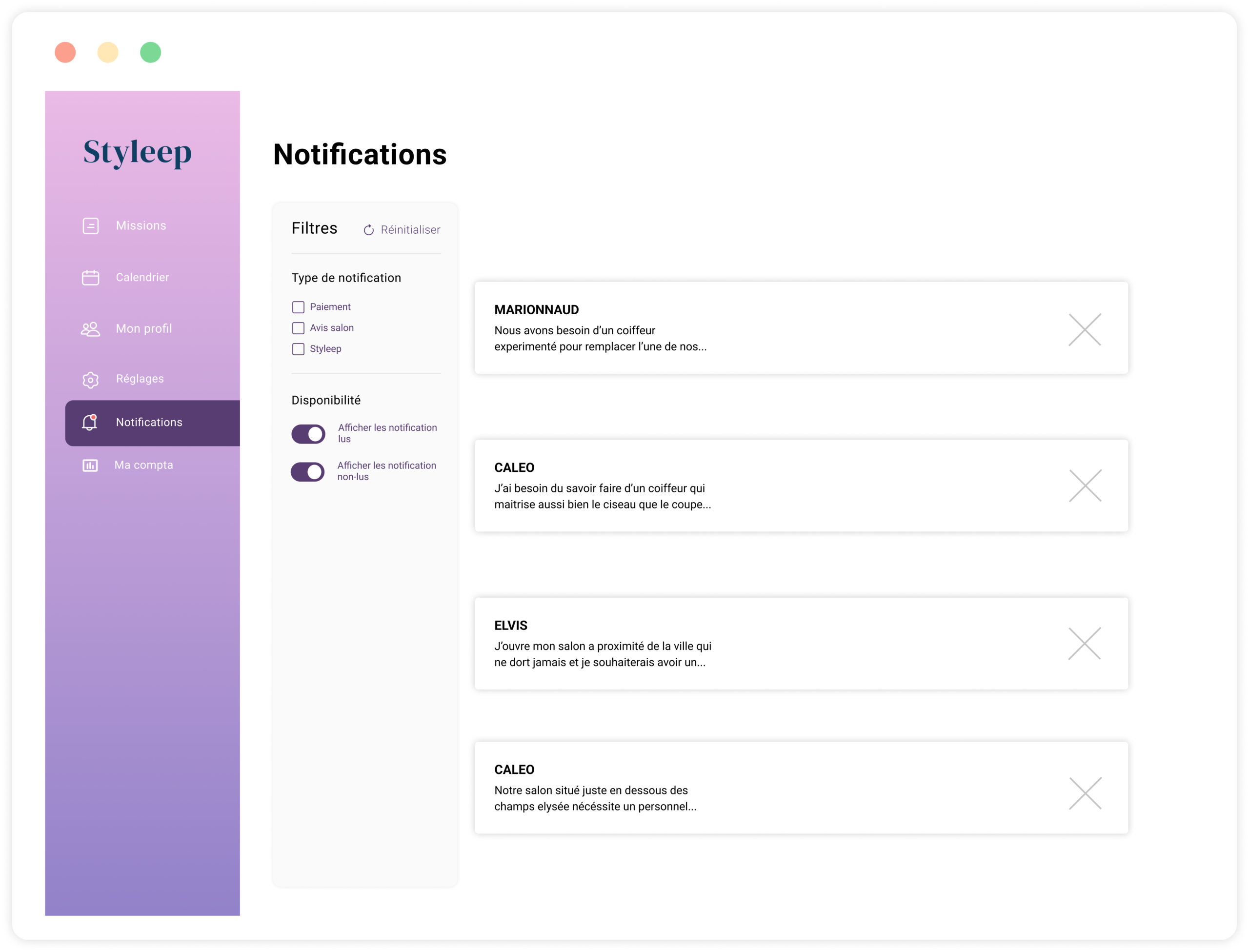 Styleep vous envoie les offres de prestations correspondant à vos disponibilités, vos compétences et votre localisation.
